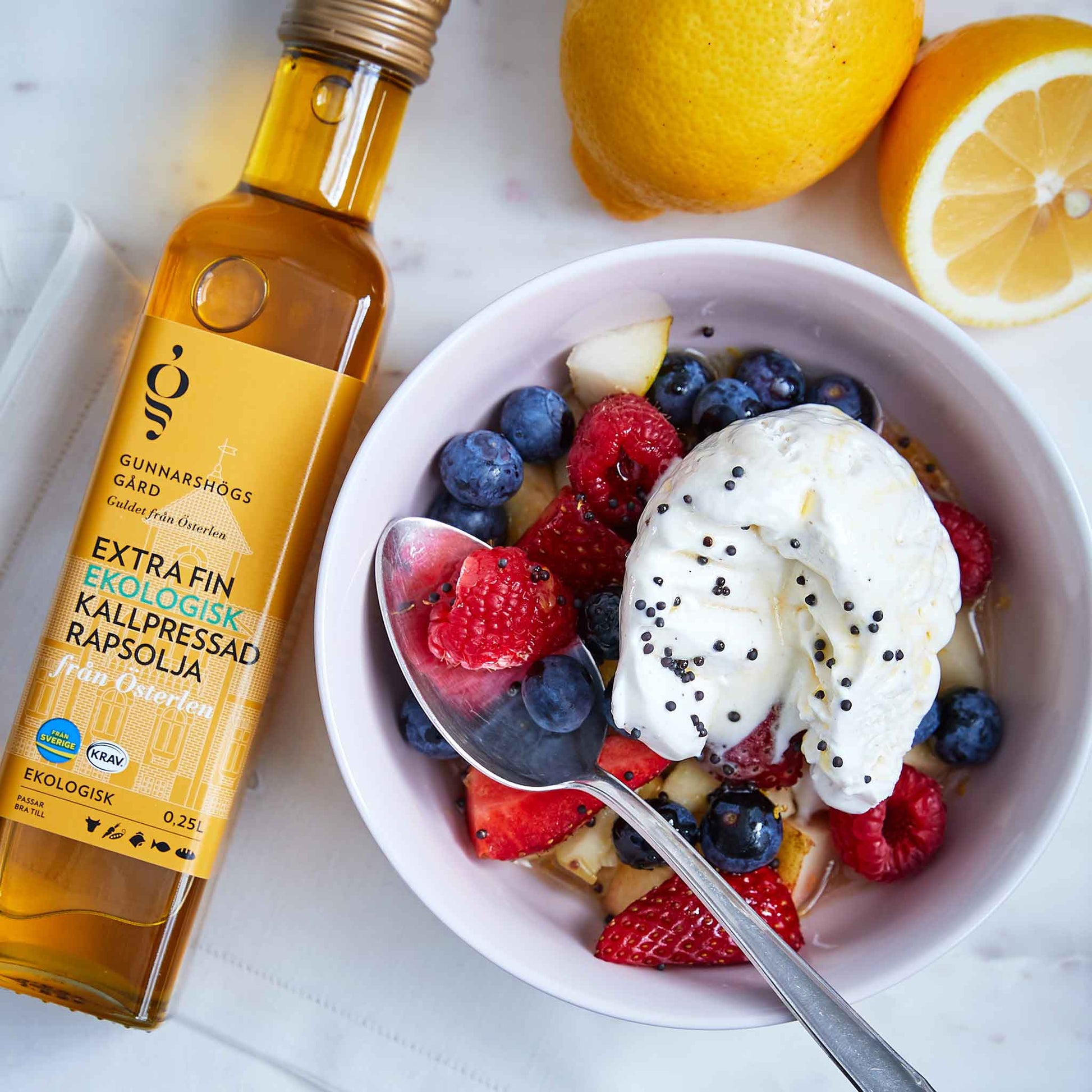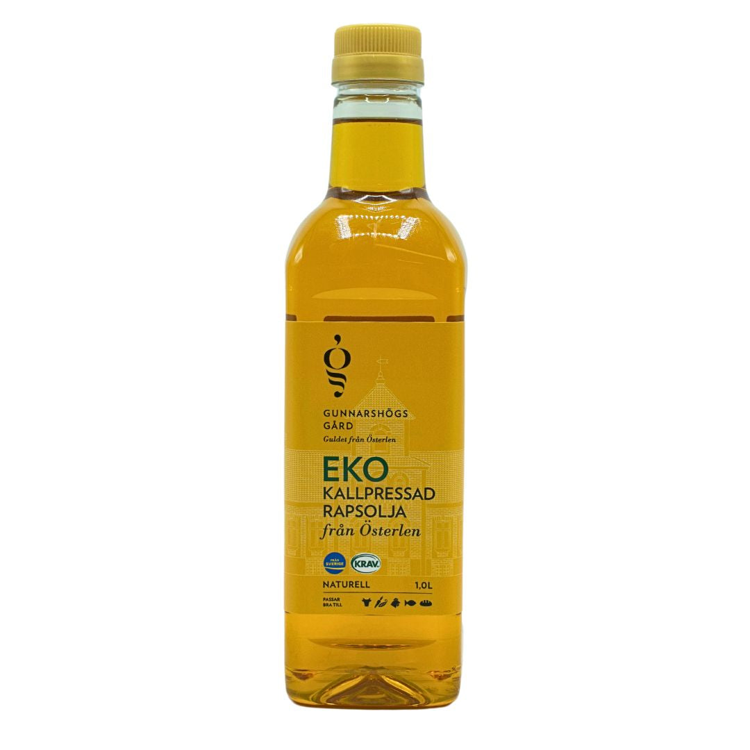 Gunnarshögs Gårds ekologiska kallpressade rapsolja är en högkvalitativ och näringsrik olja som framställs genom skonsam kallpressning av ekologisk rapsfrö. Oljan är av högsta kvalitet och har en mild och nötaktig smak som passar perfekt till både matlagning och som dressing på sallader och andra råa rätter.