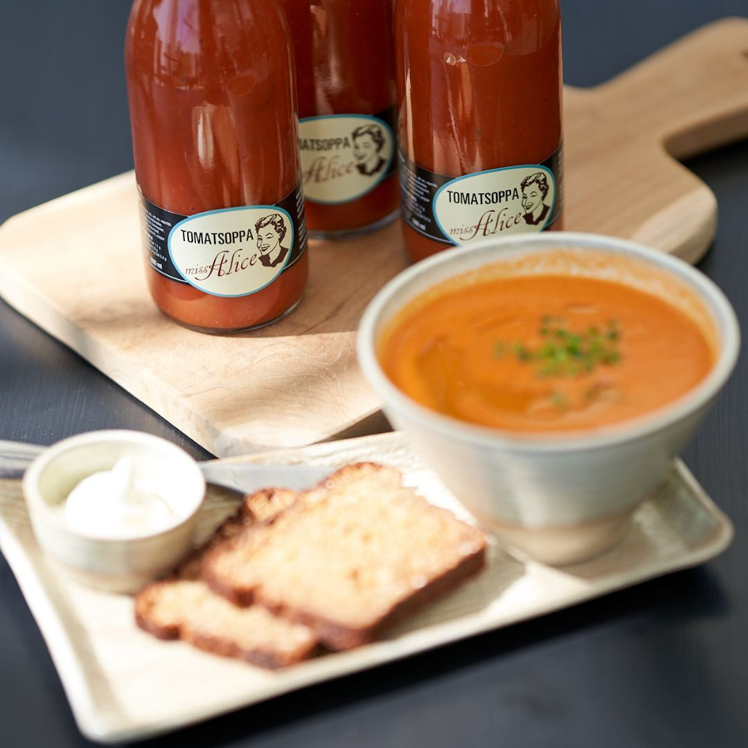 Tomatsoppa med ljuvligsmak! En storsäljare på menyn på Miss Alice krog i Vallåkra. Här kan du erbjuda kunderna att göra den underbart goda soppan hemma.